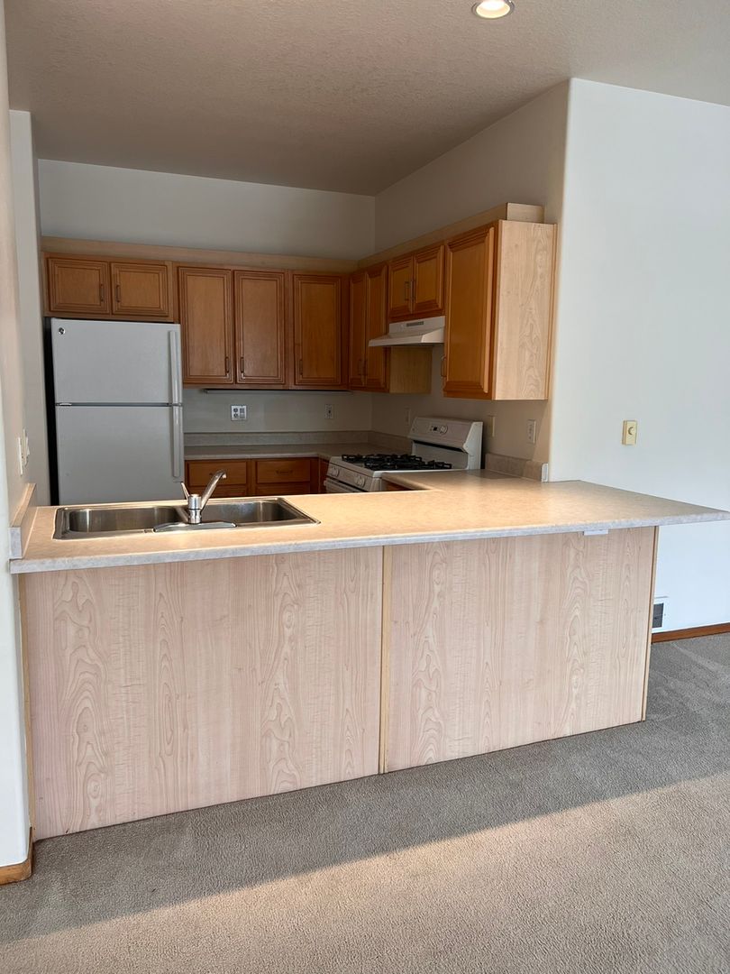 Welcome to Macadam Village, this spacious 2-bedroom, 2-bath apartment loated that offers comfort, convenience, and plenty of room to relax. The open layout features a bright living room with a cozy gas fireplace and a modern kitchen with a gas range and beautiful maple cabinets. You’ll love having a full-size washer and dryer right in your unit. The primary bedroom includes a walk-in closet and a private en suite bathroom with double sinks. With carpet in the living areas, tile floors in the kitchen and baths, and a large private deck to enjoy the outdoors, this home has everything you need. Assigned off-street parking and controlled access entry make living here even more convenient and worry-free.
