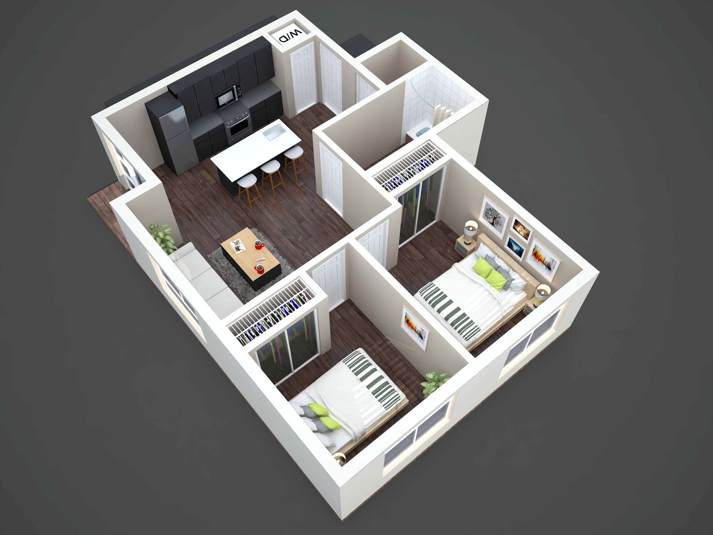 This 2 bedroom, 1 bathroom apartment home has stunning luxury finishes, beautiful countertops, a kitchen island for bar seating, huge closets with convenient built-in shelving, in-unit washer and dryer and is in a great location right past the curve on Division Street! The huge ceilings make way for incredible natural light with views of the mountains and the city!