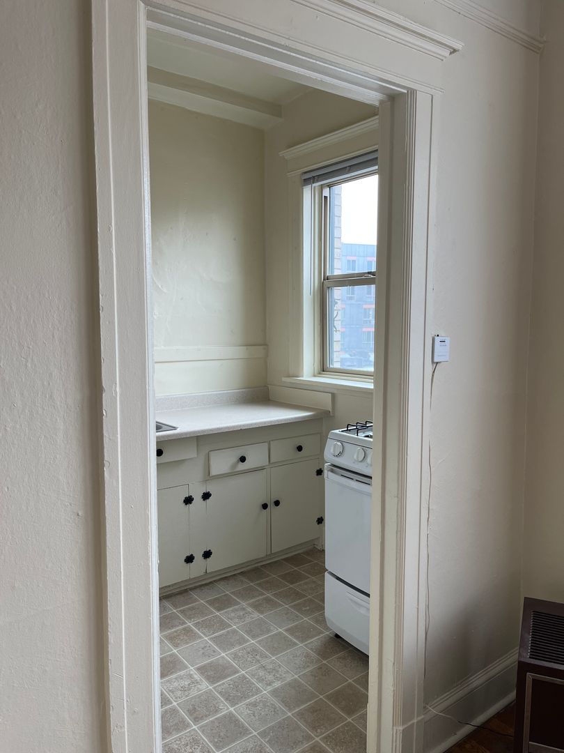 Located on the border of the NW District and Goose Hollow, right across from Providence Park, offers the best of both worlds: urban convenience and the charm of historic surroundings. This vintage studio boasts carpeting throughout living room/sleeping area creating a cozy and inviting atmosphere. Living here means immersing yourself in the vibrant energy of city life while enjoying the comfort and character of a well-appointed space.