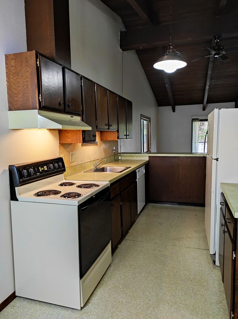2 Bedroom with Vaulted Ceilings, Back Patio and Washer Dryer Hook Ups in Unit.